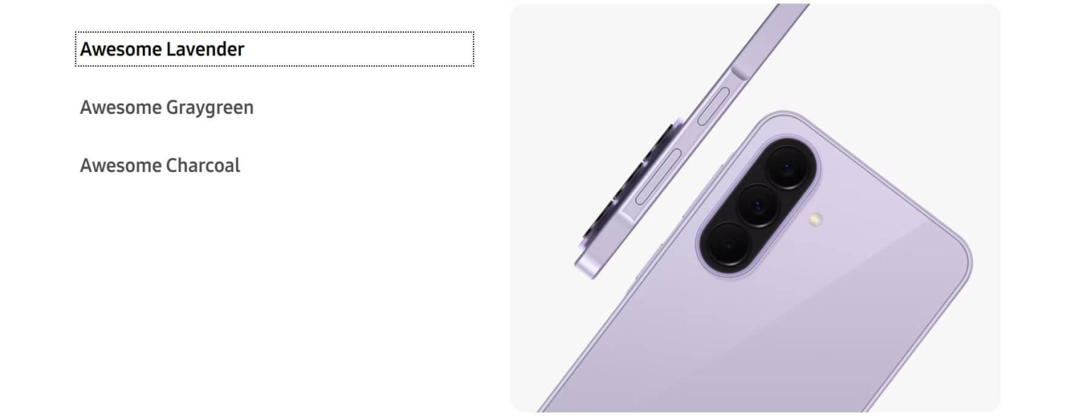 Get ready to attract attention with Galaxy A37 5G's trendy colours. Whether you prefer playful bright hues or darker, sophisticated tones, choose the colour that suits you best. Galaxy A37 5G comes in Awesome Lavender, Awesome Graygreen and Awesome Charcoal.