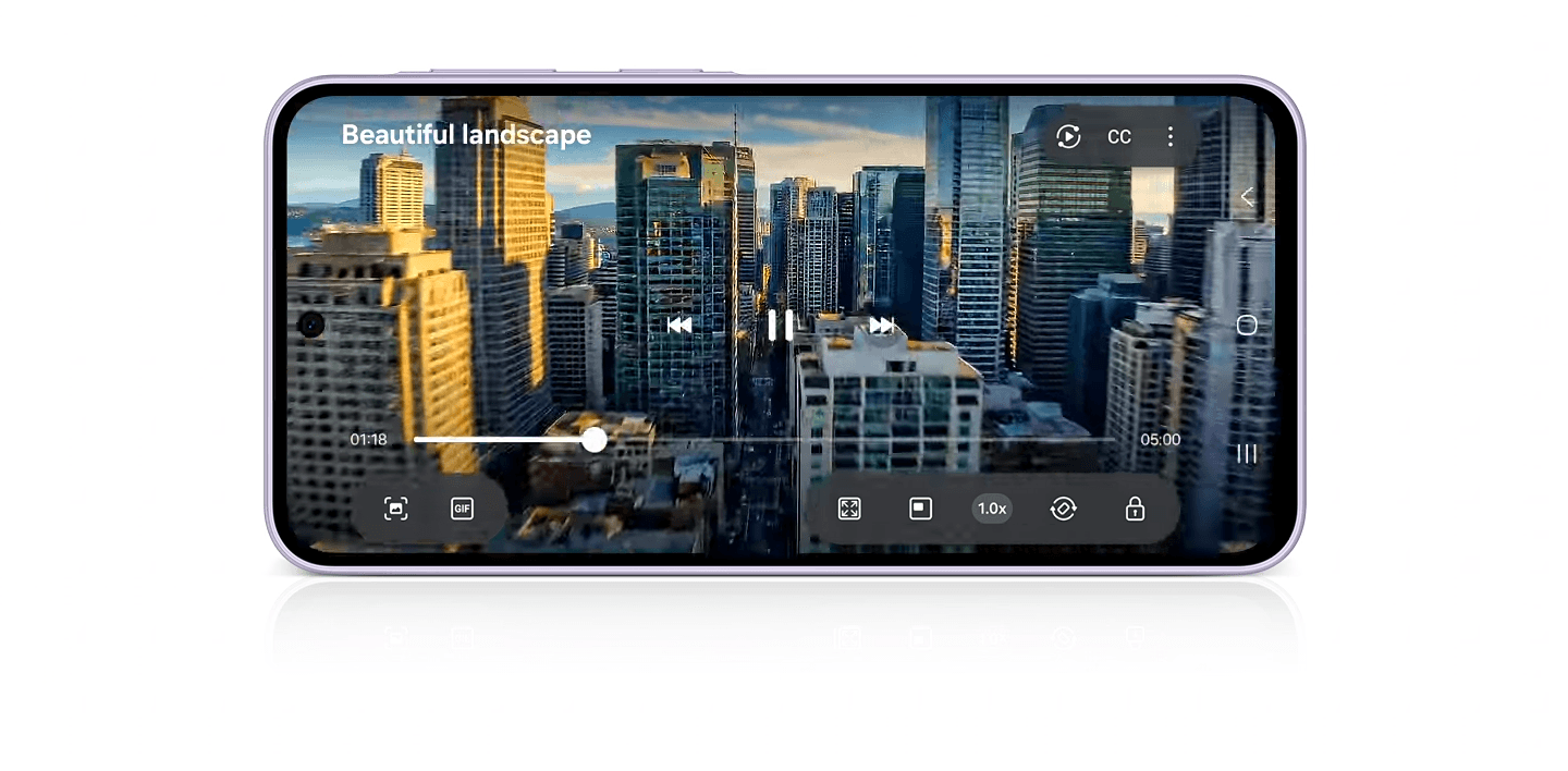 Dive into the immersive visuals on Galaxy A37 5G. The 17.01 cm FHD+ Super AMOLED display has slimmer bezels, offering a seamless viewing experience. Whether you're streaming, gaming or browsing, your screen remains bright and clear with Vision Booster.*Requires optimal 5G connection. 5G network availability and actual speed may vary depending on country, region, network provider and user environment. Image simulated for illustrative purposes. Contains an AI-generated image with post-editing applied. Display received Eye Care Certification by SGS based on its ability to reduce the harmful effects of blue light. Measured diagonally, the screen size is 17.01 cm in the full rectangle and 16.55 cm accounting for the rounded corners. Actual viewable area is less due to the rounded corners and the camera hole.