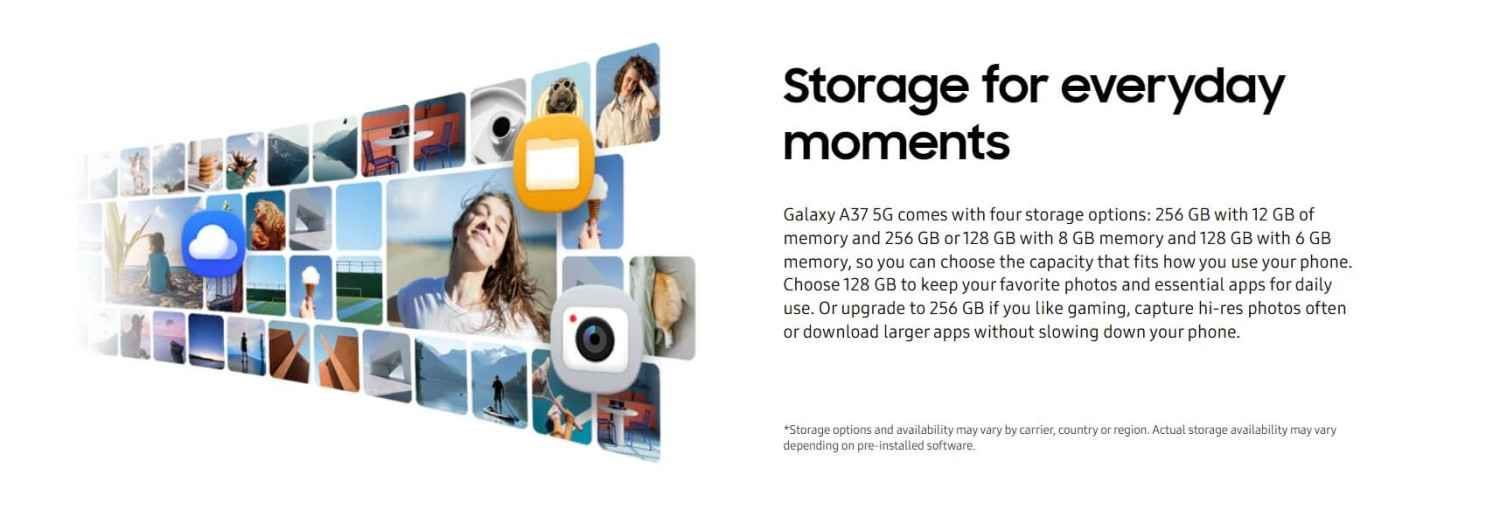 Meet the new Galaxy A37 5G with a slim, refined look. Take awesome selfie videos and photos with the enhanced cameras. Photo editing is easier than ever with Awesome Intelligence features like Object Eraser and Edit suggestion. Make your every day productive with a battery that lasts 2 days. Thanks to up to 6x of OS upgrades and 6 years of security updates, you can keep your phone secure and enjoy the latest features for an extended time.