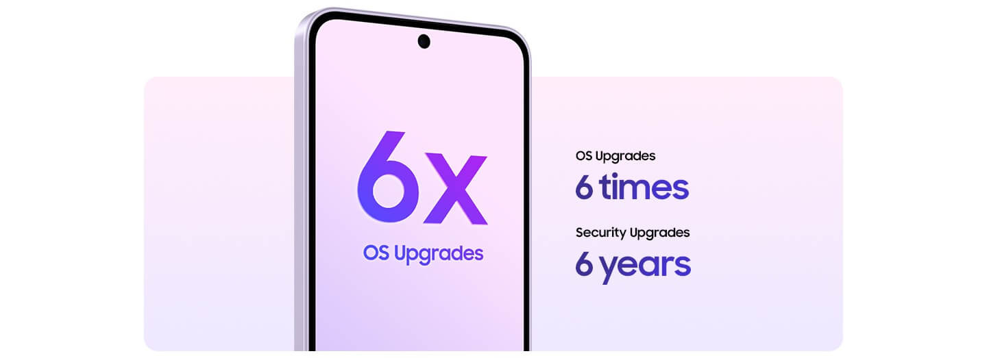 Keep your Galaxy A37 5G updated and secure with long-term software support, allowing you to enjoy your phone for years to come. Galaxy A37 5G includes support for up to 6x OS upgrades, so you can discover new and easier ways to create, connect and stay productive with seamless actions and device management features. Plus, you get up to 6 years of Security and Maintenance releases keep you ahead of security threats.